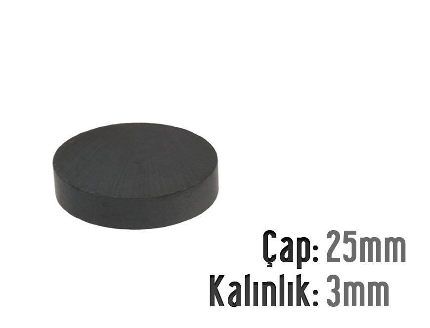 Çap: 25mm X Kalınlık: 3mm Ferrit Mıknatıs