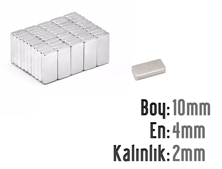 Boy: 10mm - En: 4mm - Kalınlık: 2mm Neodyum Mıknatıs