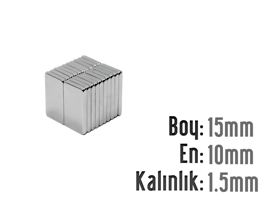Boy: 15mm - En: 10mm - Kalınlık: 1.5 mm Neodyum Mıknatıs