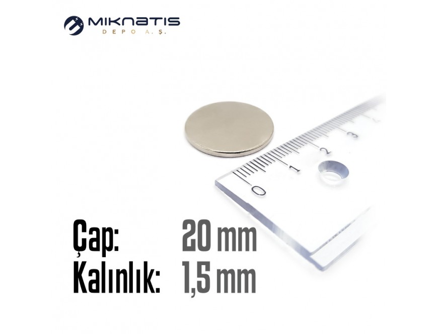 Çap: 20mm x Kalınlık: 1.5mm Neodyum Mıknatıs