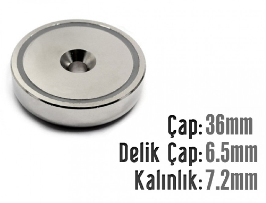 Çap 36mm X Delik Çap 6.5mm Kalınlık 7.2mm Metal Korumalı Mıknatıs