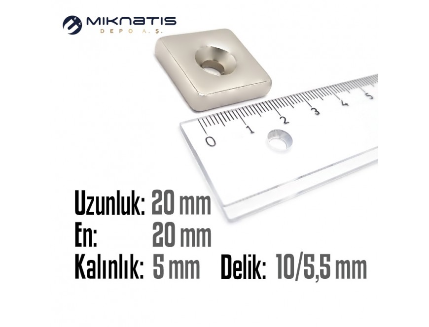 Boy:20mm-En: 20mm-Delik Çap10/5.5 Kalınlık:5 Havşalı Mıknatıs
