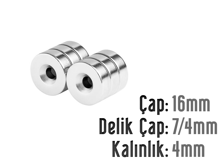 Boy: 10mm - En: 10mm - Delik Çap 8/4 Kalınlık: 5mm Havşalı Mıknatıs