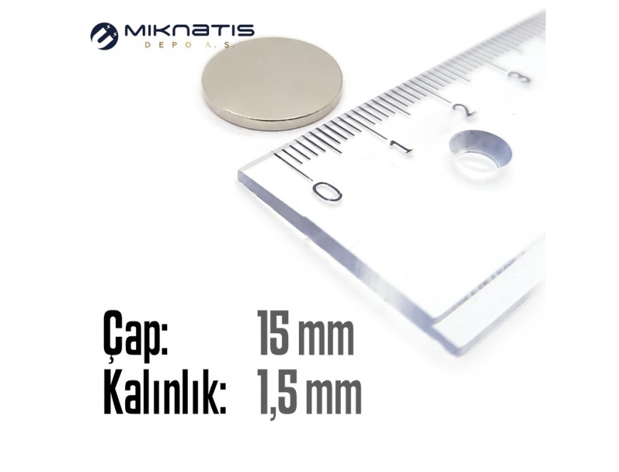 Çap: 15mm x Kalınlık: 1,5mm Neodyum Mıknatıs