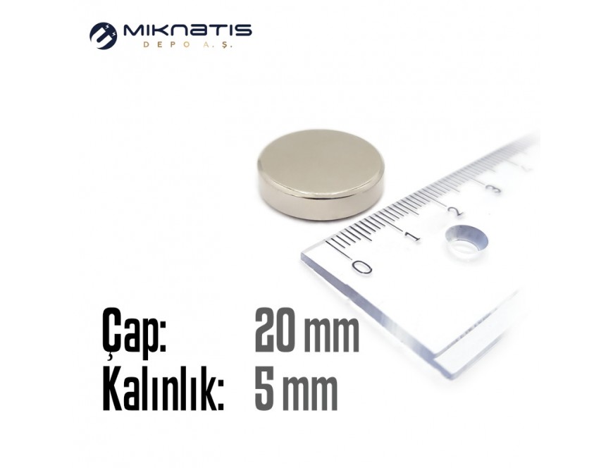 Çap: 20mm x Kalınlık: 5mm Neodyum Mıknatıs