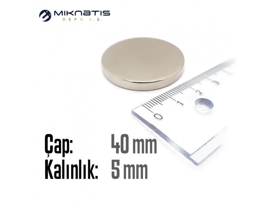 Çap: 40mm x Kalınlık: 5mm Neodyum Mıknatıs