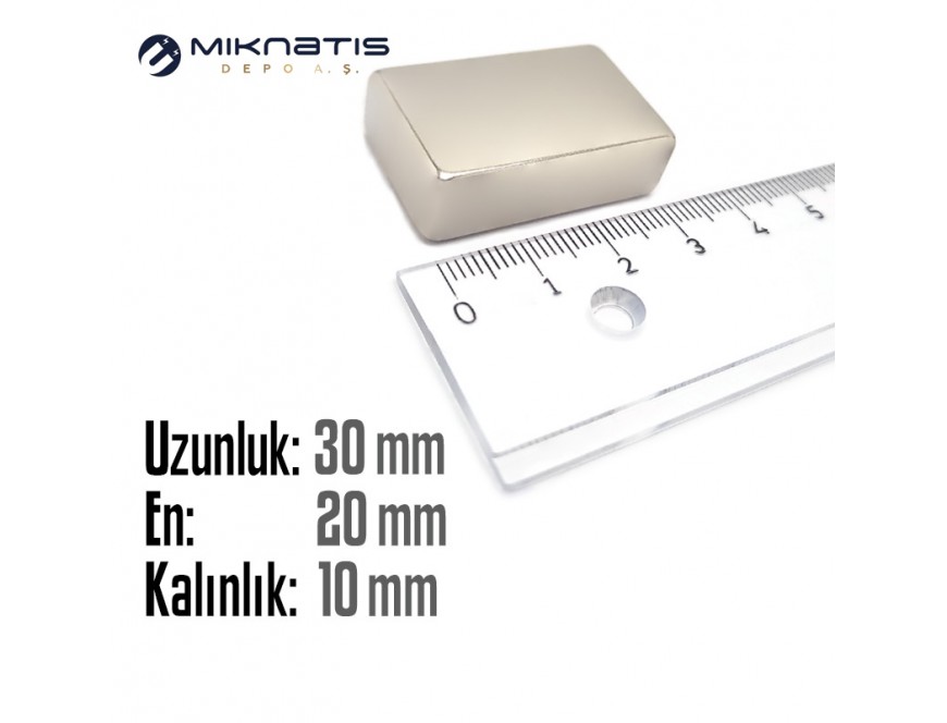 Boy: 30mm - En: 20mm - Kalınlık: 10mm Neodyum Mıknatıs