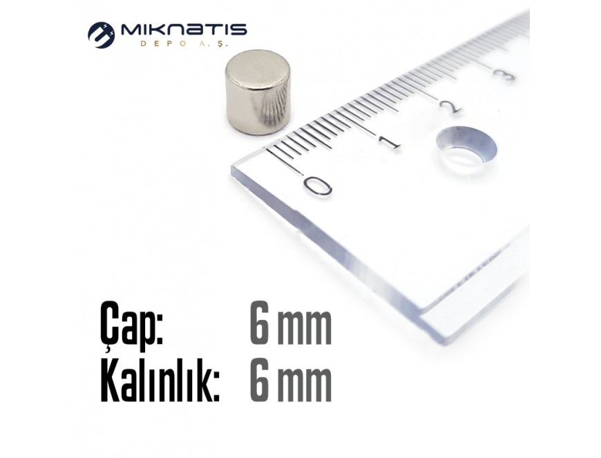 Çap: 6mm x Kalınlık: 6mm Neodyum Mıknatıs