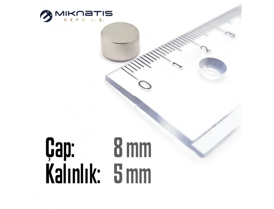 Çap: 8mm x Kalınlık: 5mm Neodyum Mıknatıs