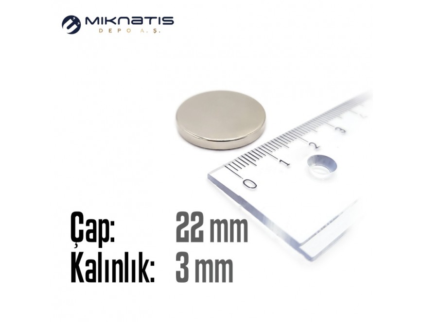 Çap: 22mm x Kalınlık: 3mm Neodyum Mıknatıs