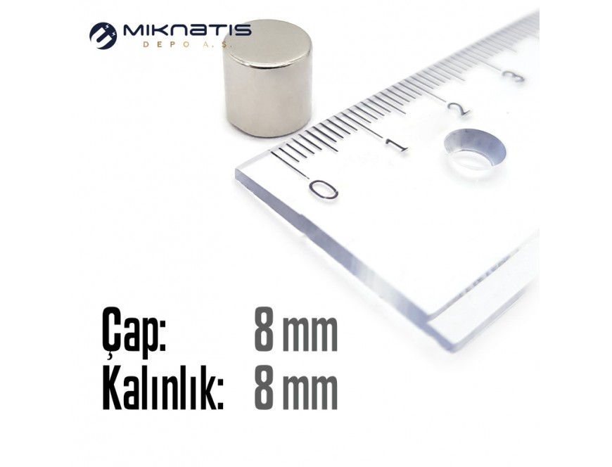 Çap: 8mm x Kalınlık: 8mm Neodyum Mıknatıs