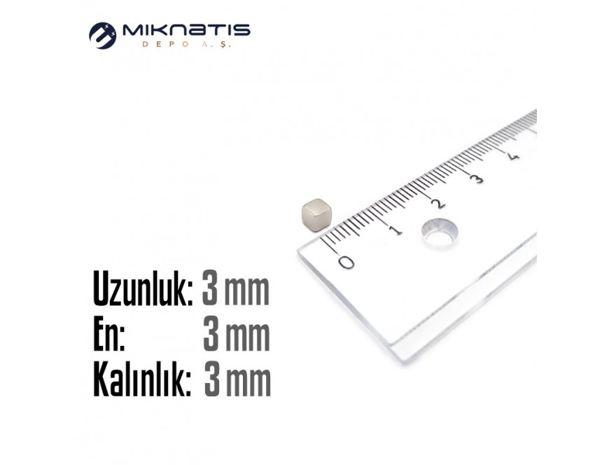 Boy: 3mm - En: 3mm - Kalınlık: 3mm Neodyum Küp Mıknatıs