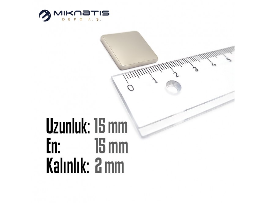 Boy: 15mm - En: 15mm - Kalınlık: 2mm Neodyum