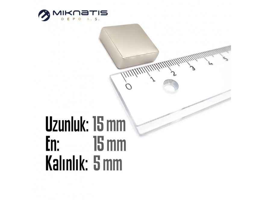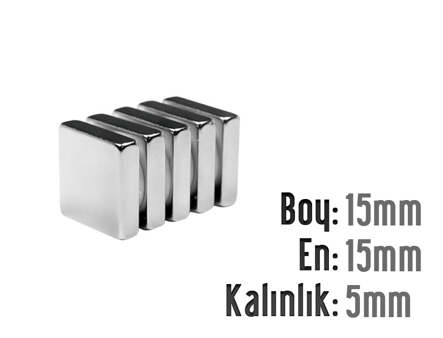 Boy: 15mm - En:15mm - Kalınlık: 5mm Neodyum