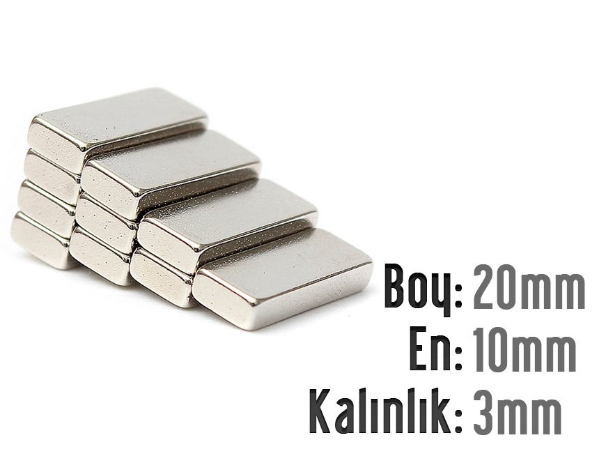 Boy: 20mm - En:10mm - Kalınlık: 3mm Neodyum Mıknatıs