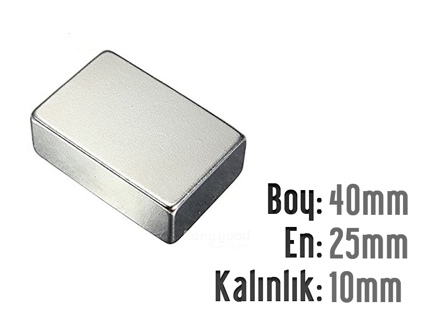 Boy: 40mm - En: 25mm - Kalınlık: 10mm Neodyum Mıknatıs