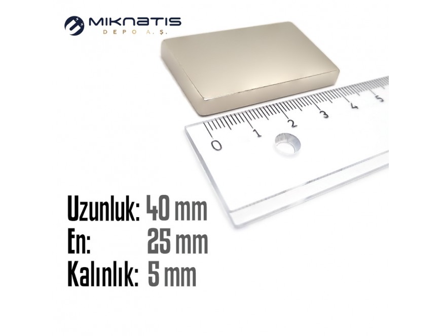 Boy: 40mm - En: 25mm - Kalınlık: 5mm Neodyum Mıknatıs