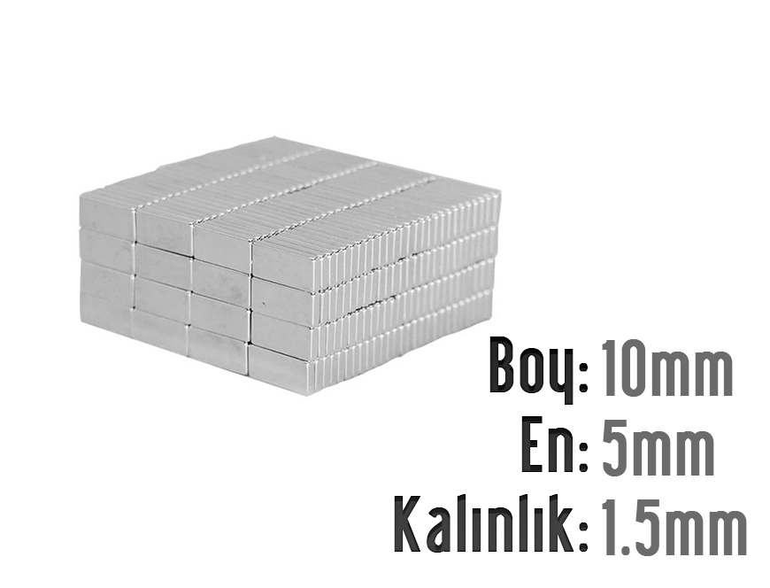 Boy: 10mm - En: 5mm - Kalınlık: 1.5mm Neodyum Mıknatıs