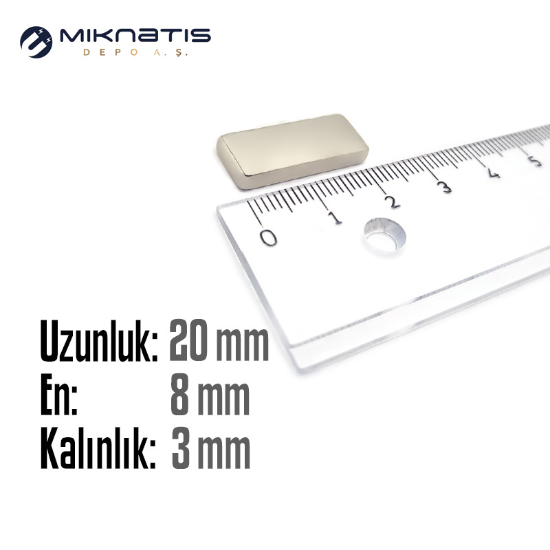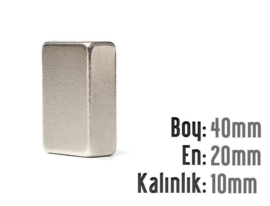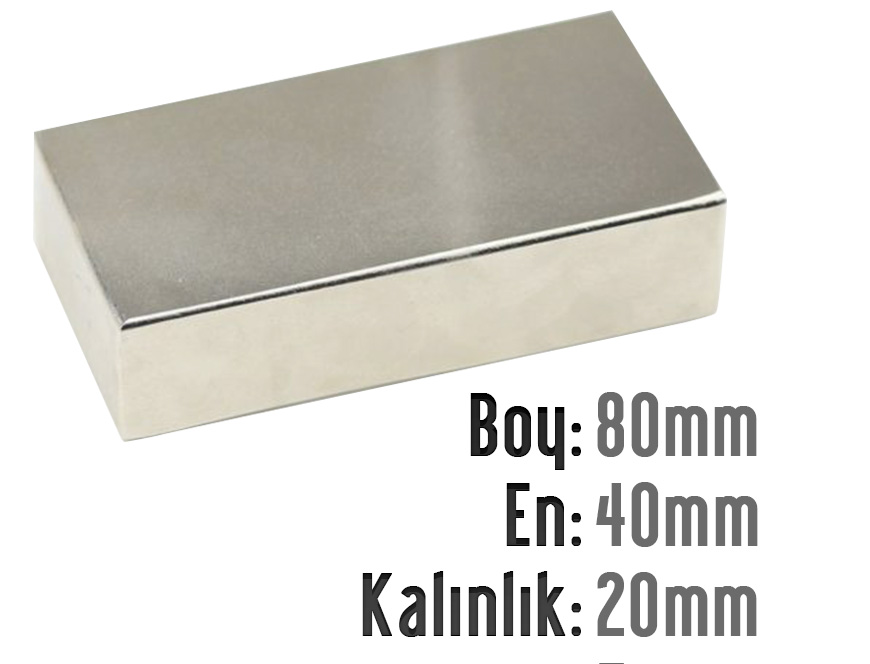Boy: 80mm - En: 40mm - Kalınlık: 20mm Neodyum Mıknatıs