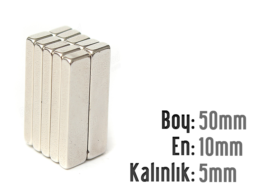 Boy: 10mm - En: 5mm - Kalınlık: 5mm Neodyum Mıknatıs